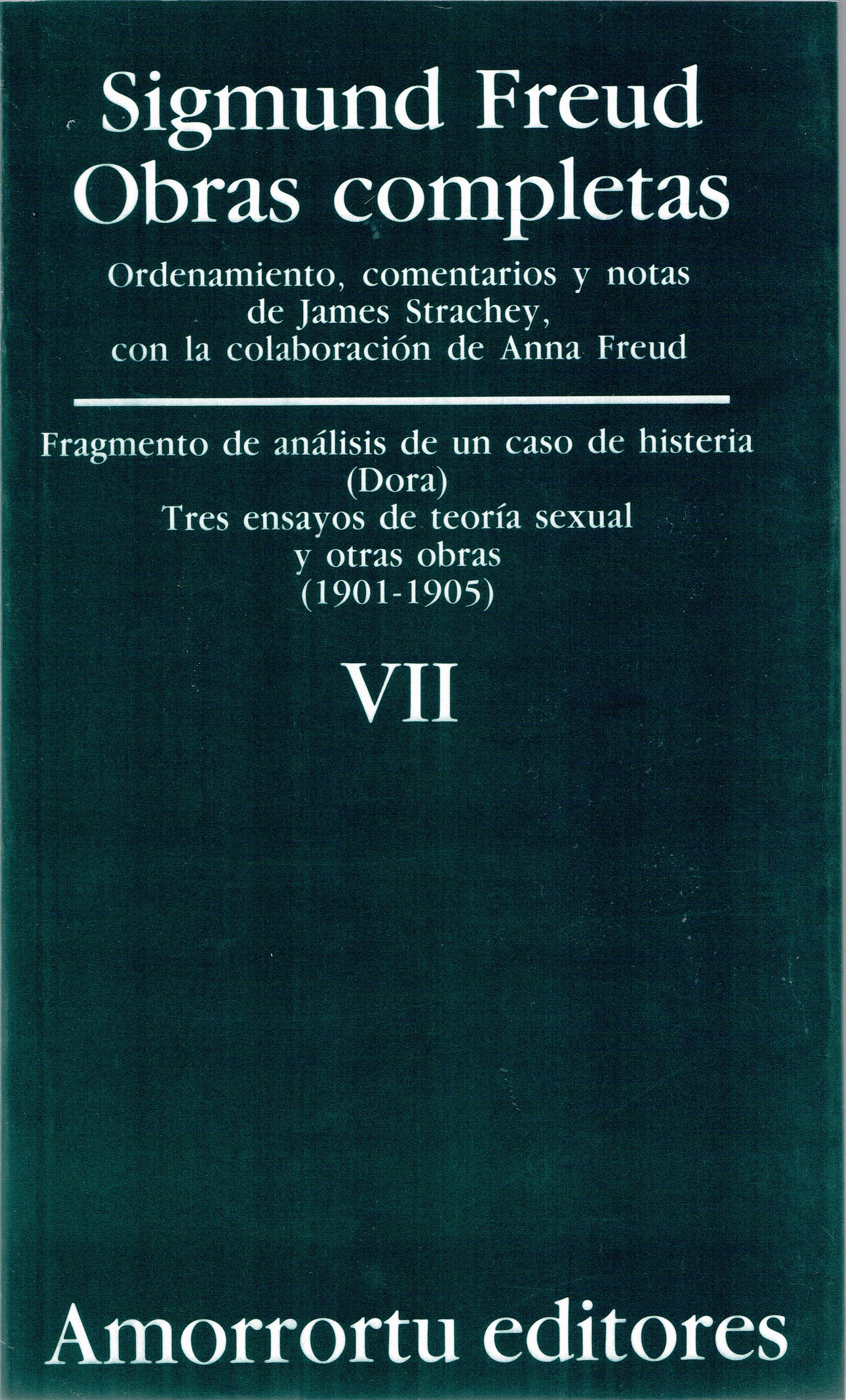 Índice general abreviado: Advertencia sobre la edición en castellano. Lista de abreviaturas. Fragmento de análisis de un caso de histeria (1905 [1901]). Tres ensayos sobre teoría sexual (1905). I. Las aberraciones sexuales. II. La sexualidad infantil. III. Las metamorfosis de la pubertad. Resumen. Apéndice. Escritos de Freud que versan predominantemente o en gran parte sobre la sexualidad. Colaboraciones para Neue Freie Presse (1903-04). El método psicoanalítico de Freud (1904 [1903]). Sobre psicoterapia (1905 [1904]). Mis tesis sobre el papel de la sexualidad en la etiología de las neurosis (1906 [1905]). Personajes psicopáticos en el escenario (1942 [1905 o 1906]). Bibliografía e índice de autores. Índice alfabético.